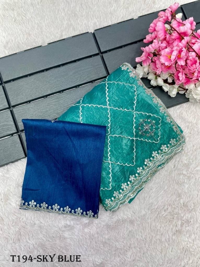 Fabric :- soft gold crushWork details :- c-pallu sqeance work in whole saree with rich look cut border workBlouse: heavy mono with work (unstitched)Color: 4