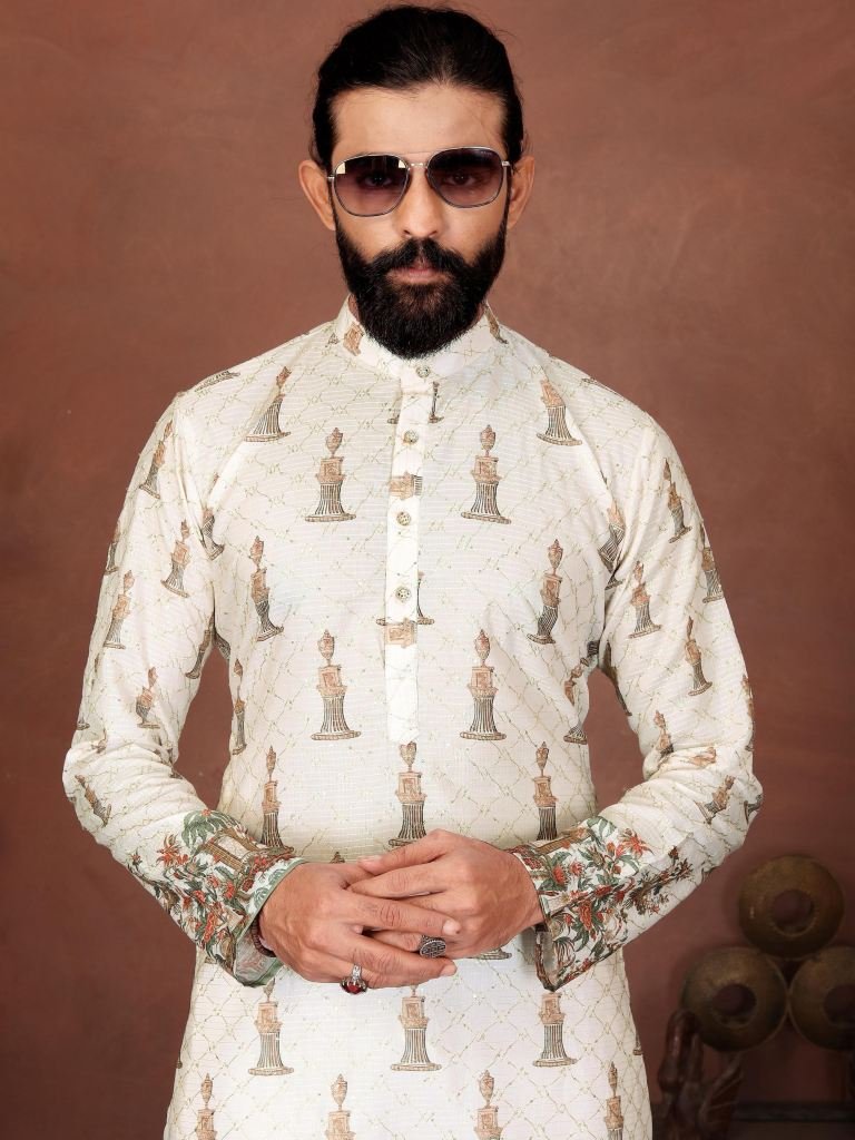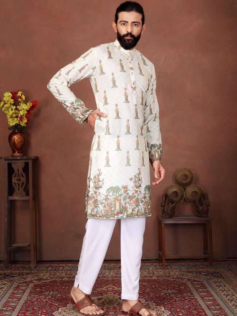 Ivory Royal Vintage Printed Men s Kurta