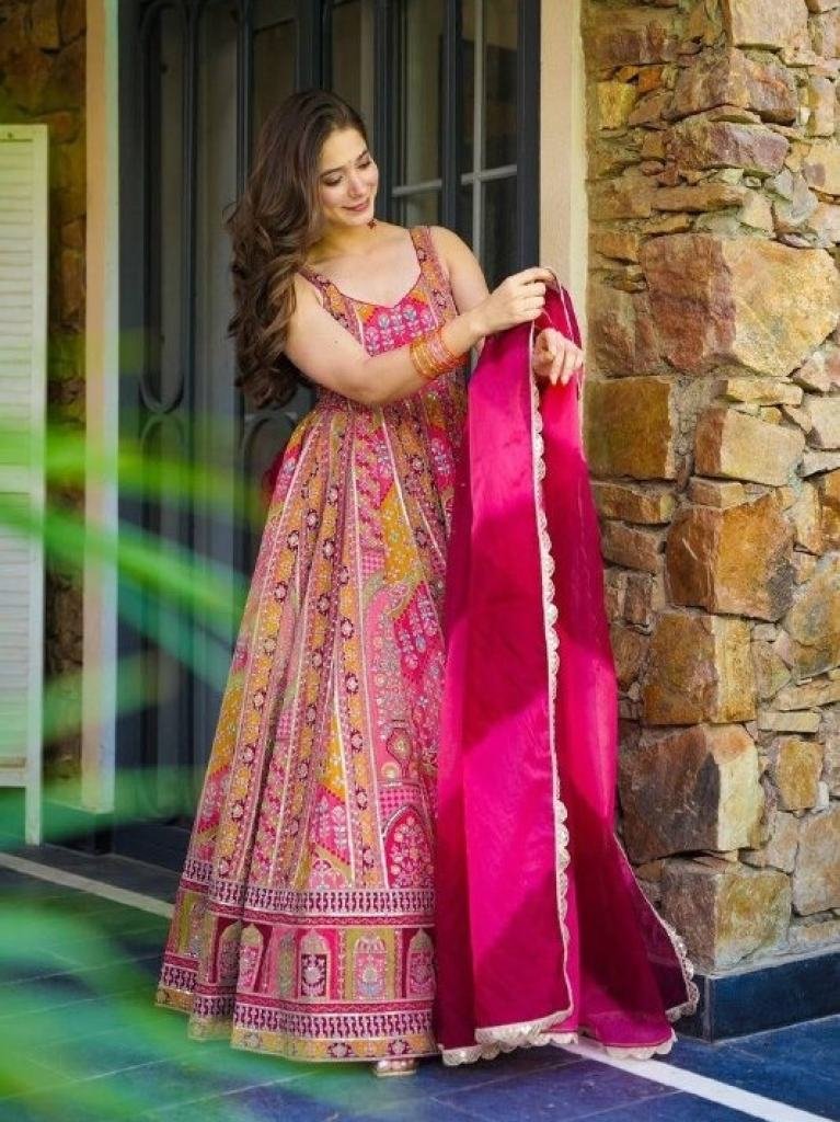 Anarkali Gown - Pure Jimmy Organza Silk Digital Printed Padded Gown With 54+gown Length !! 8mtr Flair Outfit !