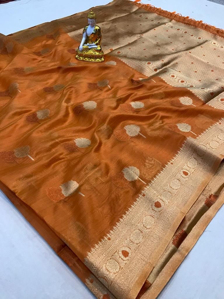 Ladies Beautiful Zari Thread Work Organza Silk Saree