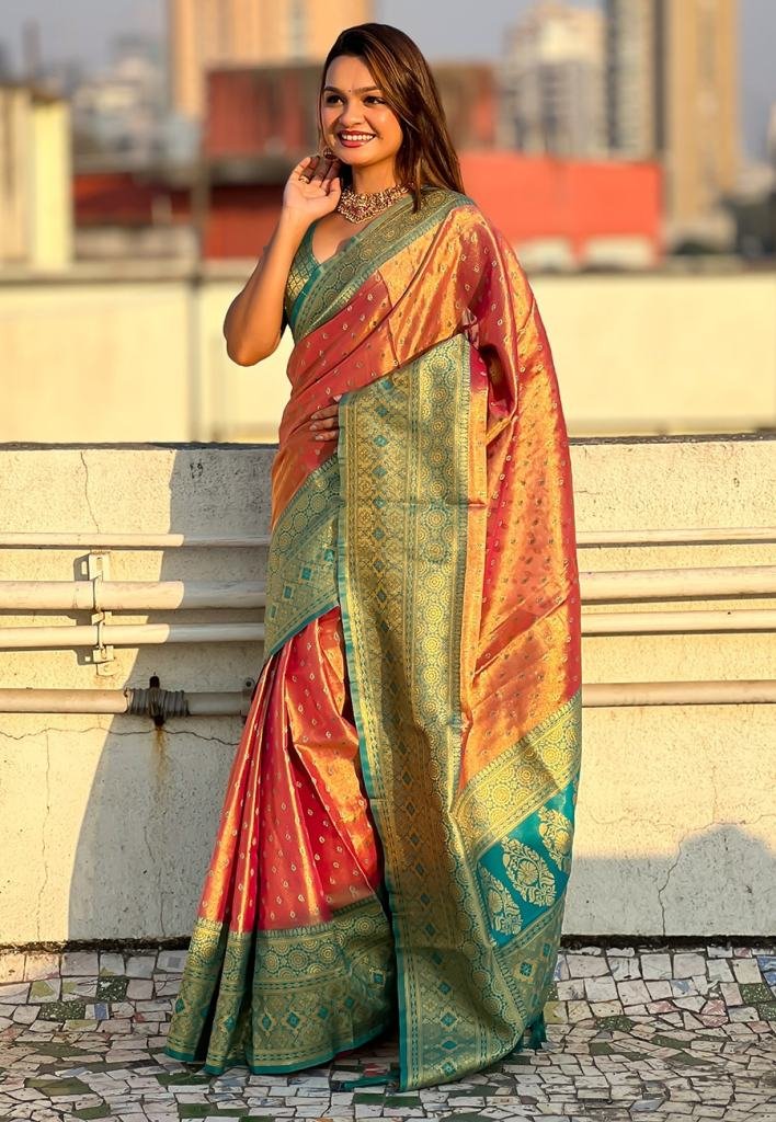• Rich Color Zari Weaving Soft Tissue Saree With Unstitch Blouse