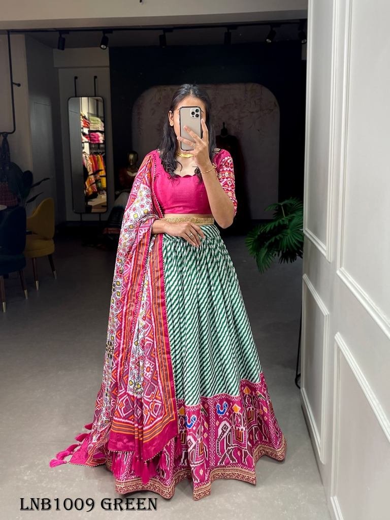 Lehenga Work : Laheriya-Patola Print and Sequins Embroidery Lace Border
