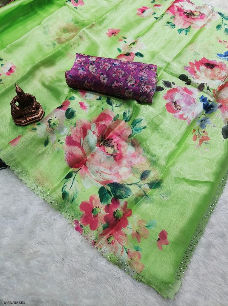 saree fabric: heavy jimmy choo saree with sirowski diamond work on allover saree and pallu with beautiful floral digital print