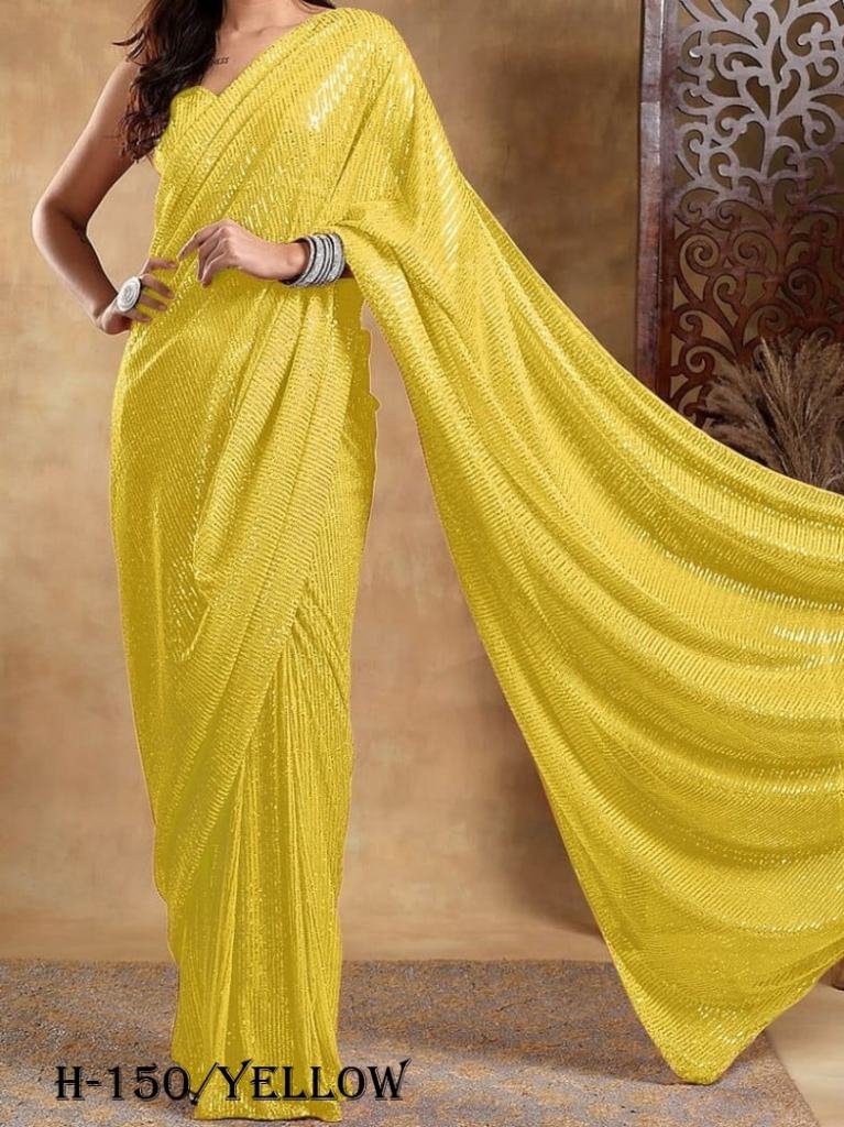 Full Saree Of 60 Gram Georgette With Heavy 3MM double Run Sequins Embrodery Work