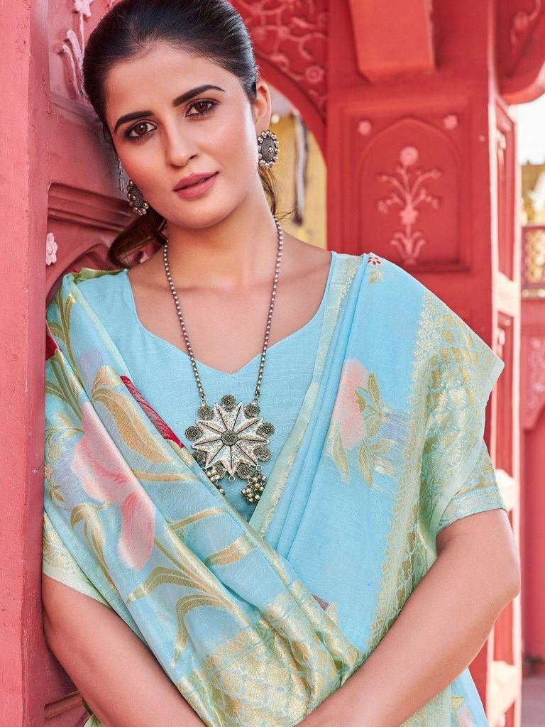Saree :- Banarasi Cotton Blend saree with self Zari Woven Work design all over the saree & zari weaving Rich pallu with zari weaving unique border & heavy rich Pallu.