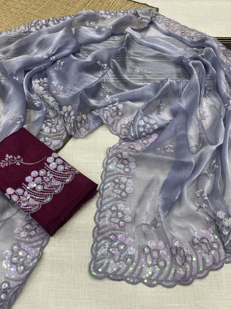 Saree - Jimmy choo ChiffonBlouse - Mono BangloriWork - Embroidery Saree Length :5.5 MeterBlouse Length : 0.8 Meter