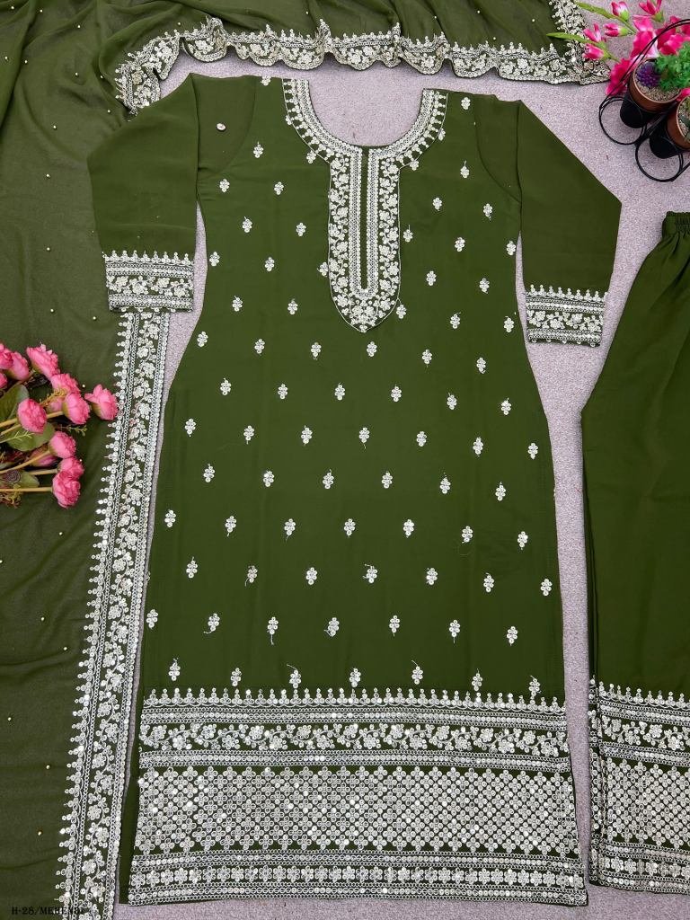 Top Fabric :Heavy Faux Georgette With Heavy Embroidery Sequence Work With Full Sleeve