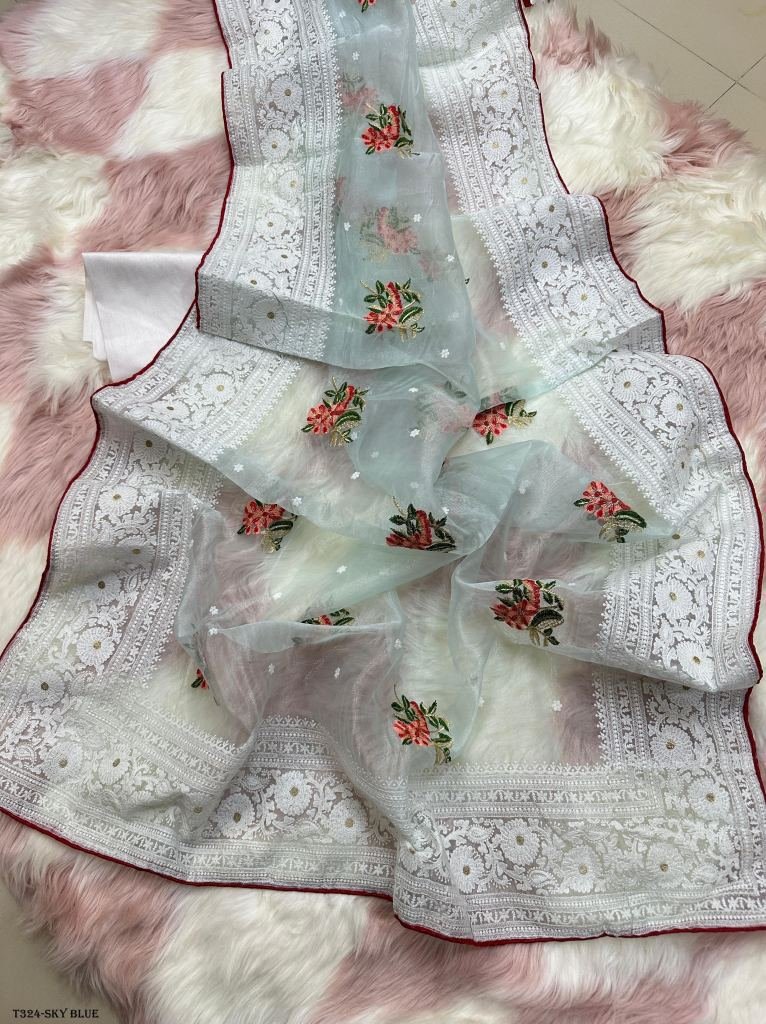 Superb Soft Refined Organza Silk Saree With Lucknowi Thread Chikankari Work border and multiple color viscos work in body too With Banglori Raw Silk Blouse