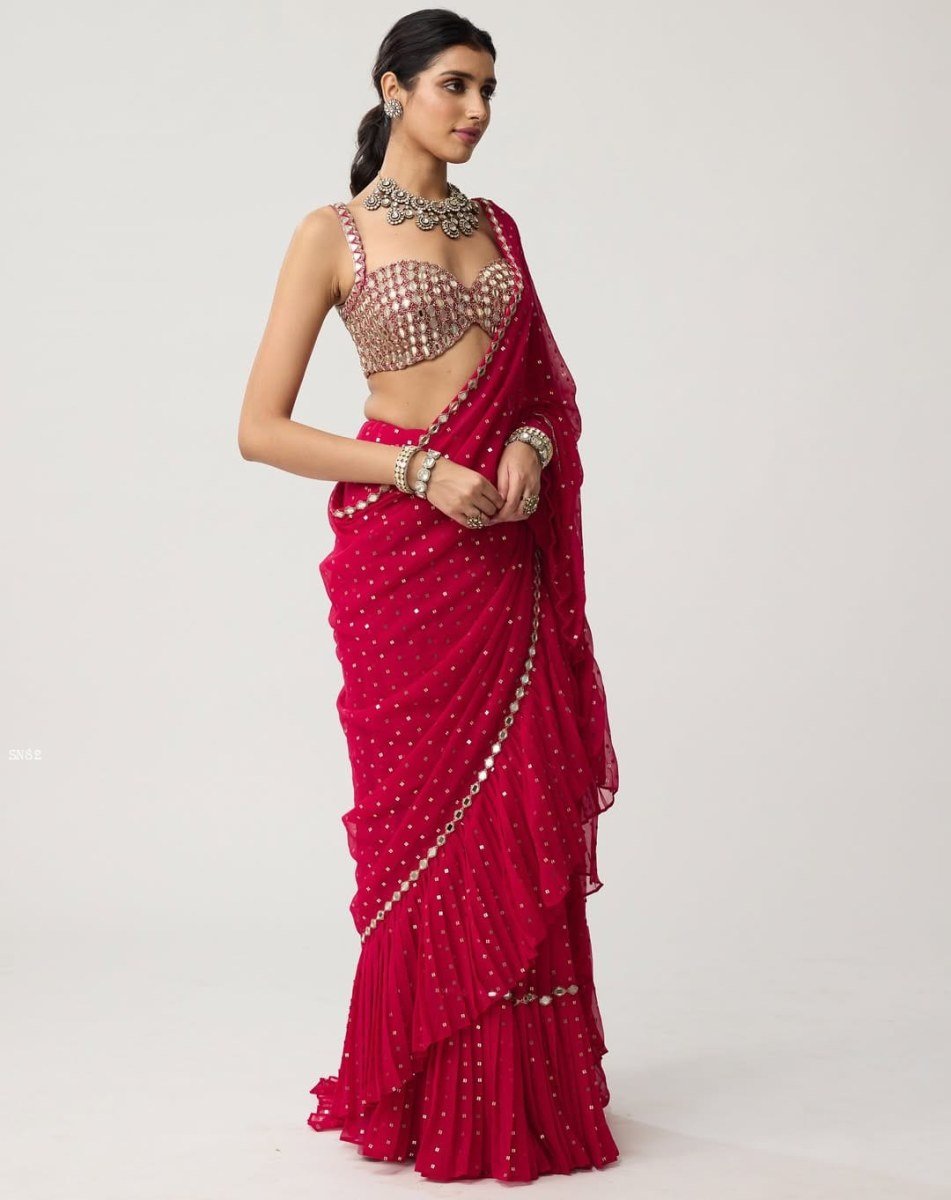 Saree Fabric Faux Georgette With Heavy 5mm Sequins Embroidery Work In Saree