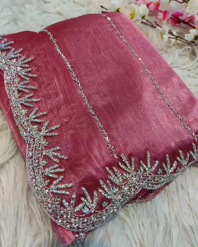 Fabric : Zimmy Choo Saree With Beautiful Khatli Cut Dana Handwork Along With Hand Diamond Work
