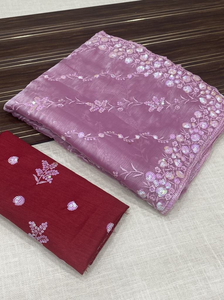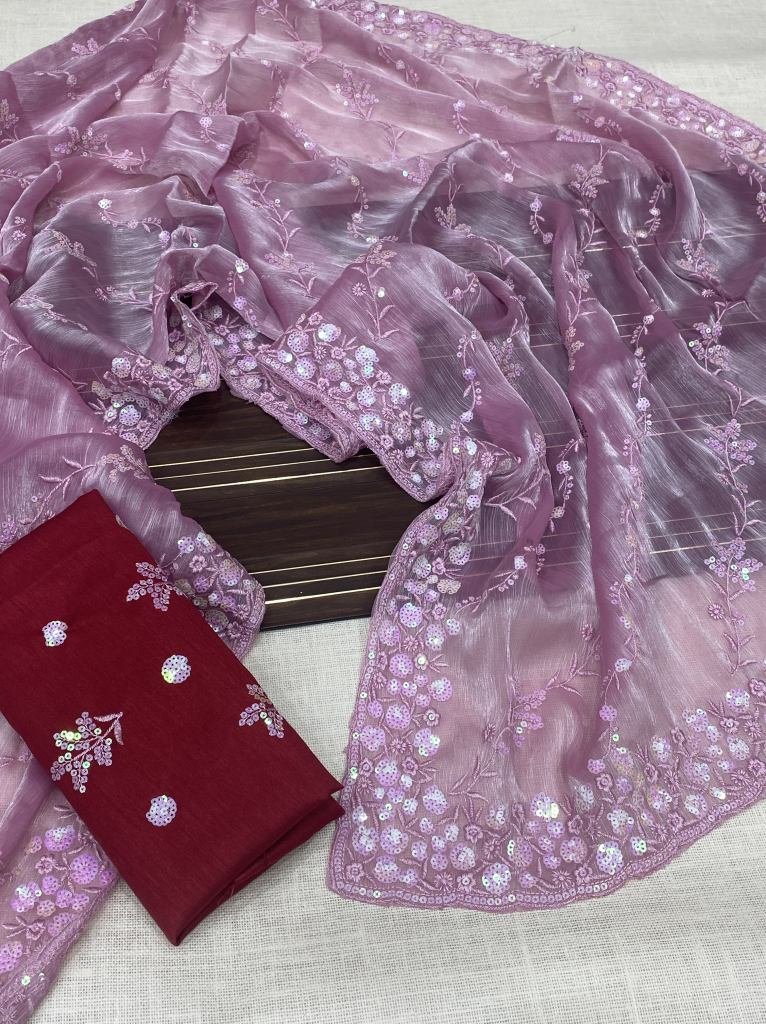 • Latest Lavender Color Jimmy Choo Chiffon Saree