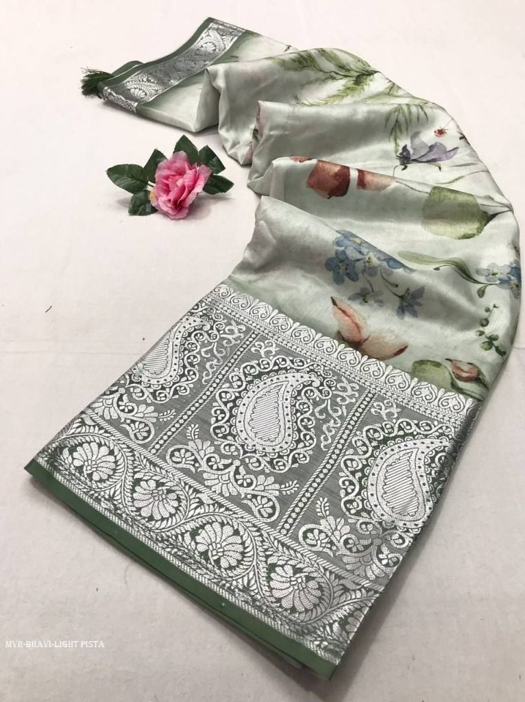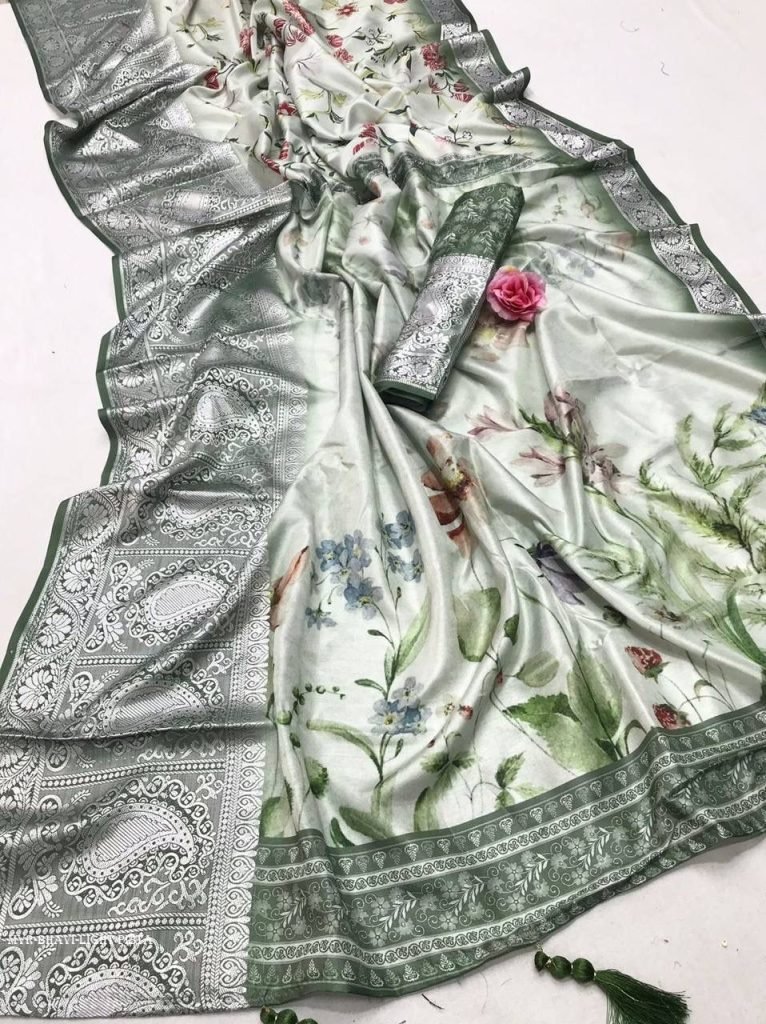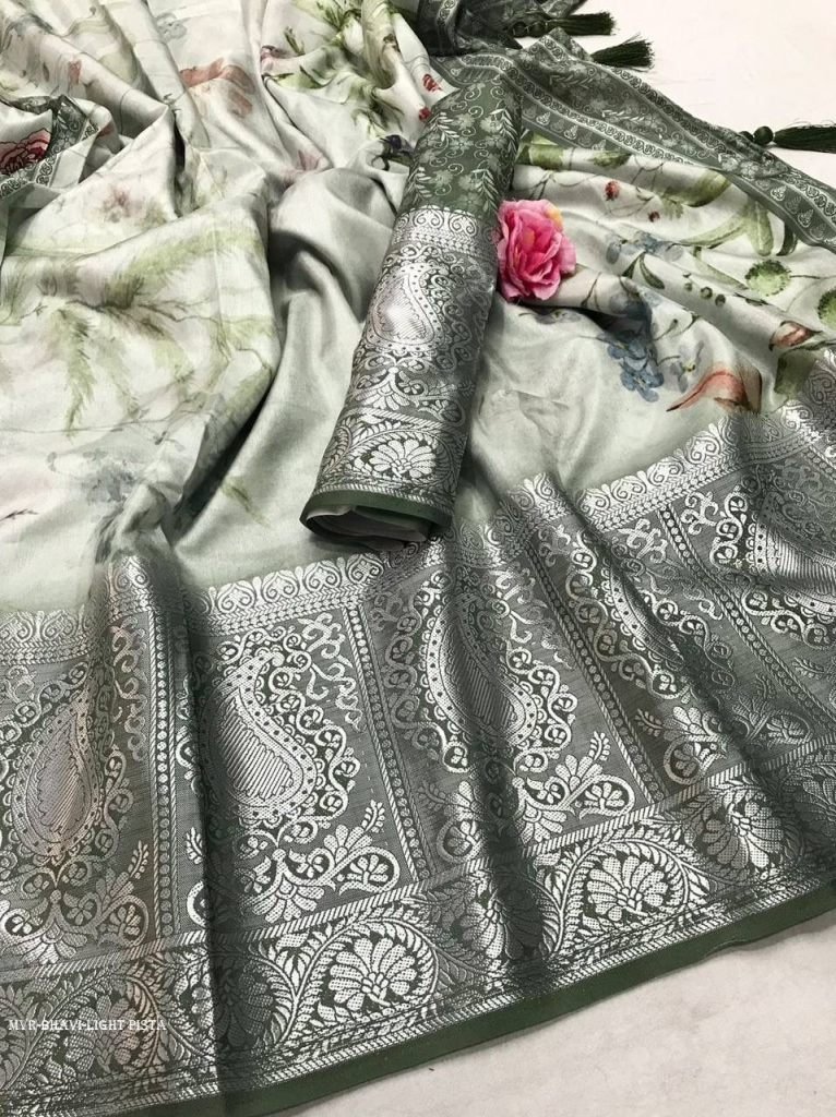 Exclusive Tussr silk Collection || Narmada®?Pure soft tussur dola satin silk with wll over beautiful triangle prints with weaving border and tasselsReady Stock!