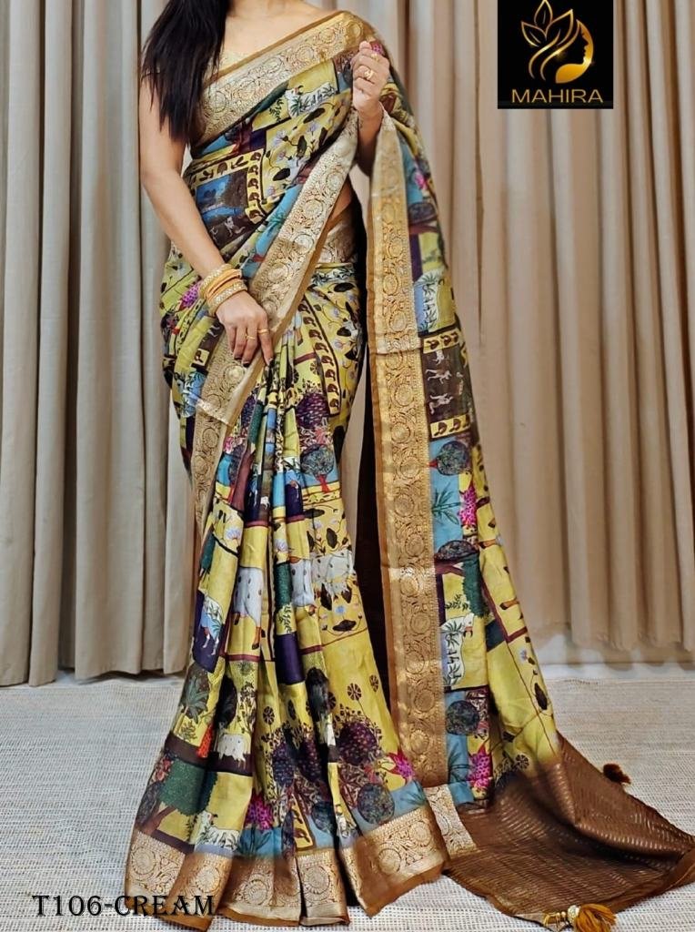 PenkalamkariBeautiful pure dola silk saree with all over kalamkari design along with zari weaving border Zari chit pallu Printed blouse as in pic Without Tussle