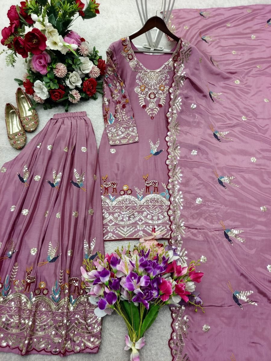 Silk With Embroidery 5mm Sequence Work With Full-Stitch