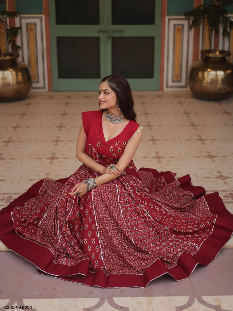 Fabric & Work:- 14 Kg Printed Reyon With Gota Patti Lace And Printed Kali Pattern.