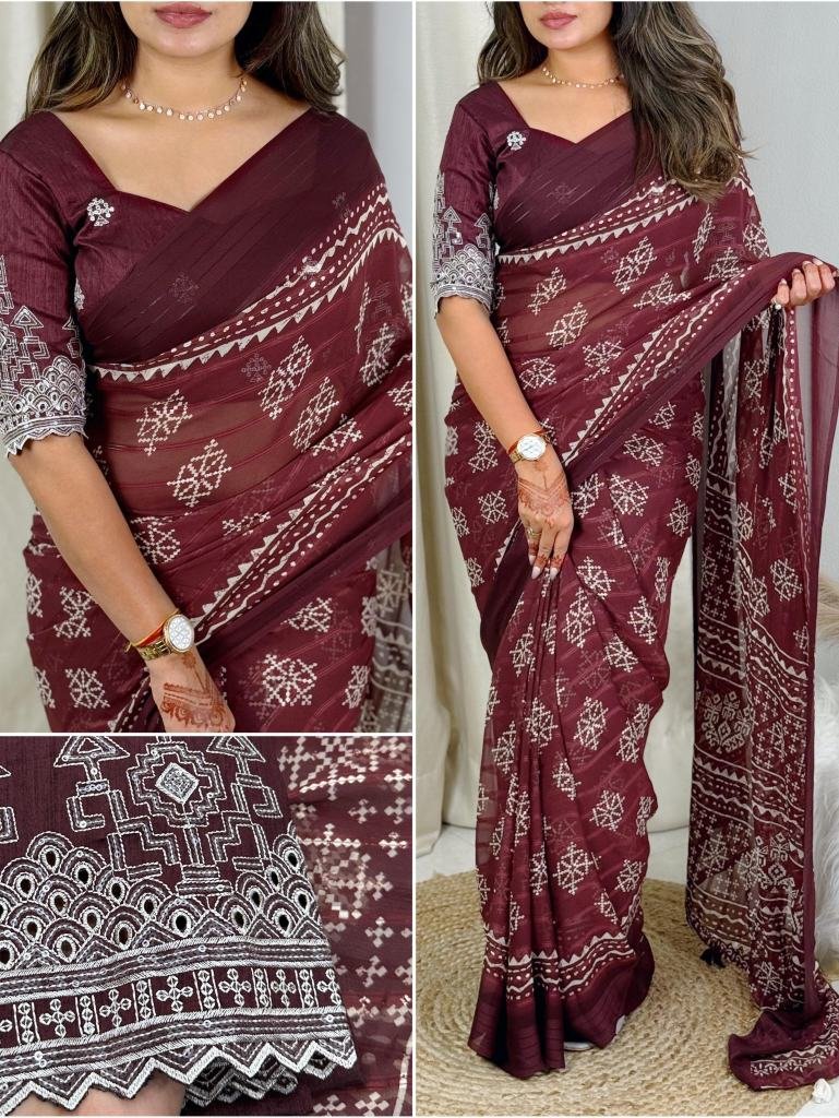 Saree- Pure Heavy Georgette With Zari Jacquard Lining