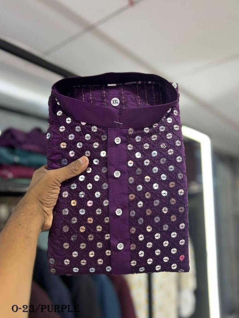 Our Cotton Straight Men's Kurta with Sequin is an exquisite piece of craftsmanship, combining the luxurious appeal of cotton fabric with subtle sequin work to create a garment that speaks of sophistication and refinement. The perfect addition to any wardrobe, this classic style is sure to add a luxurious touch to any look.