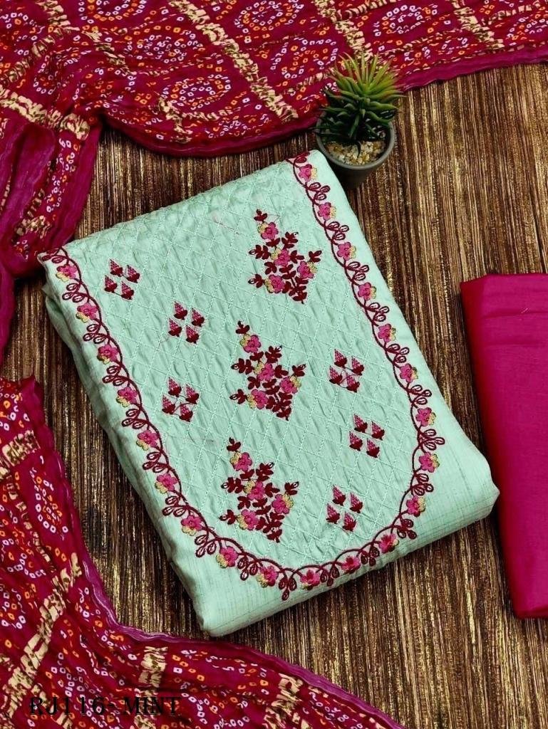 Exclusive Dress Material Suit for WomenTop Fabrics:- Cotton Silk(2)Bottom Fabrics:- Cotton(2)Dupatta: Chinon Silk(2:1)Work Type: Sequence Work
