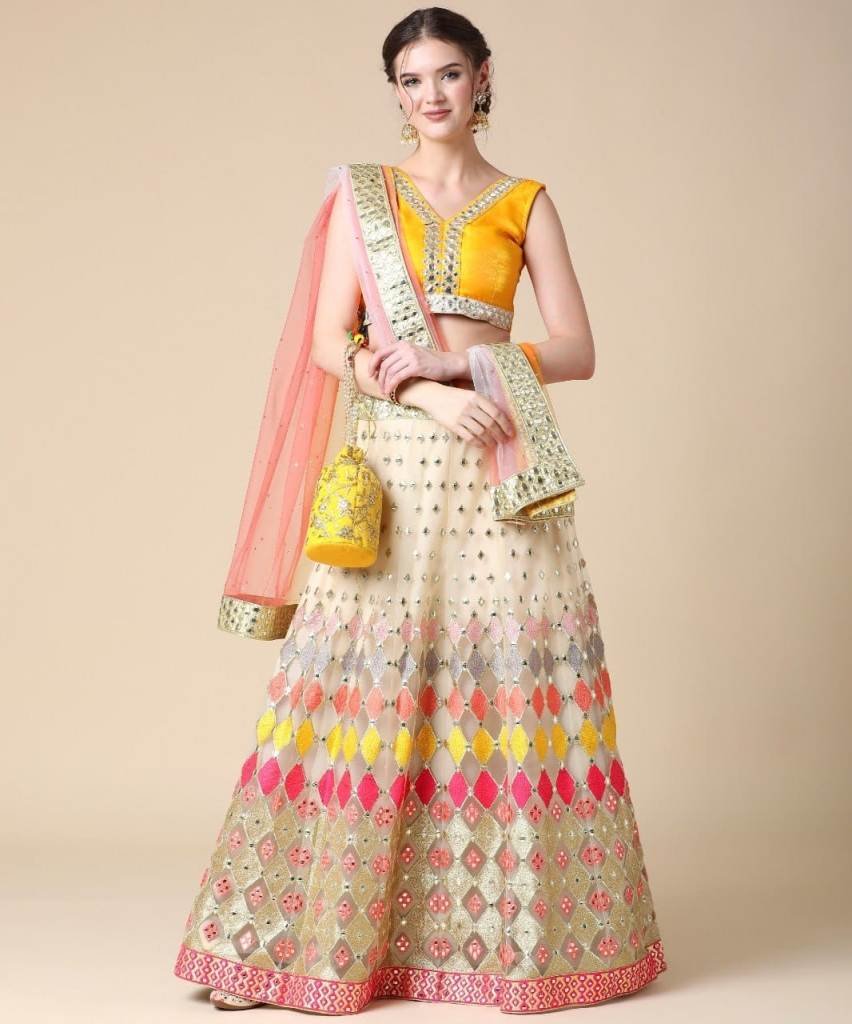 AD-Multi Colored Butterfly Net Mirror Work Lehenga Choli