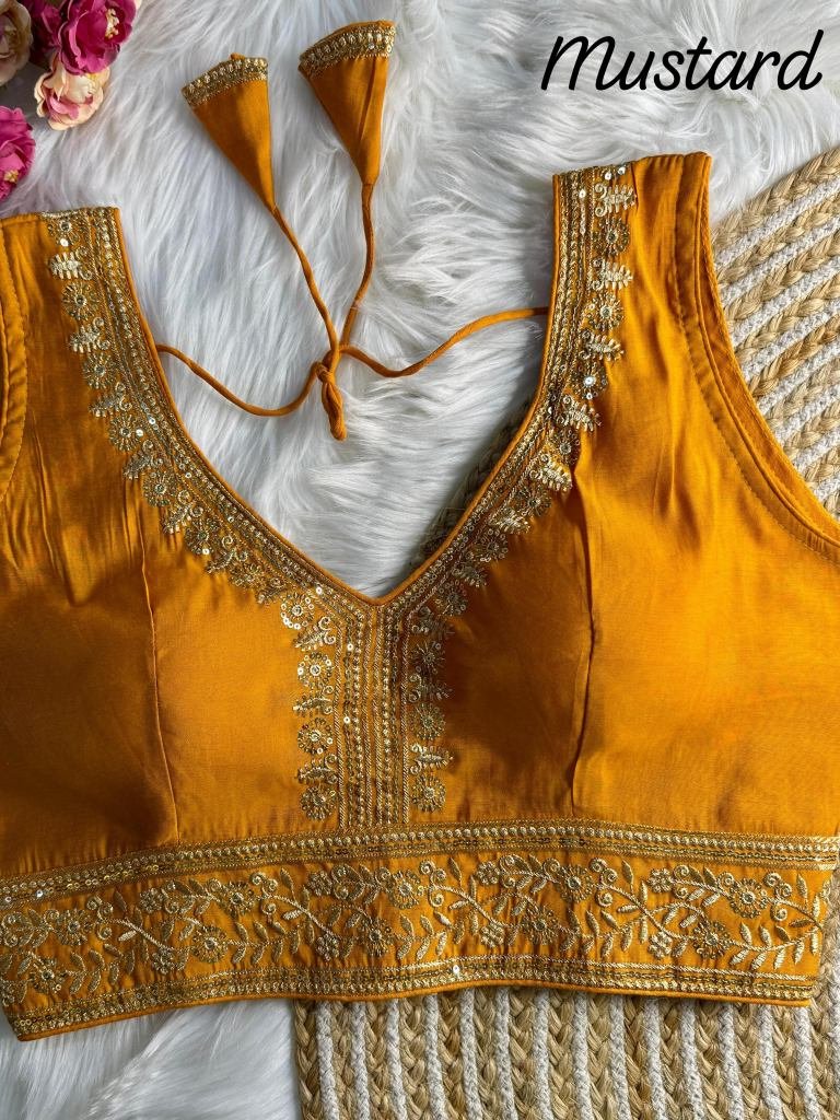 Musterd Embroidery Work Bridal Blouse With Inside Sleeve