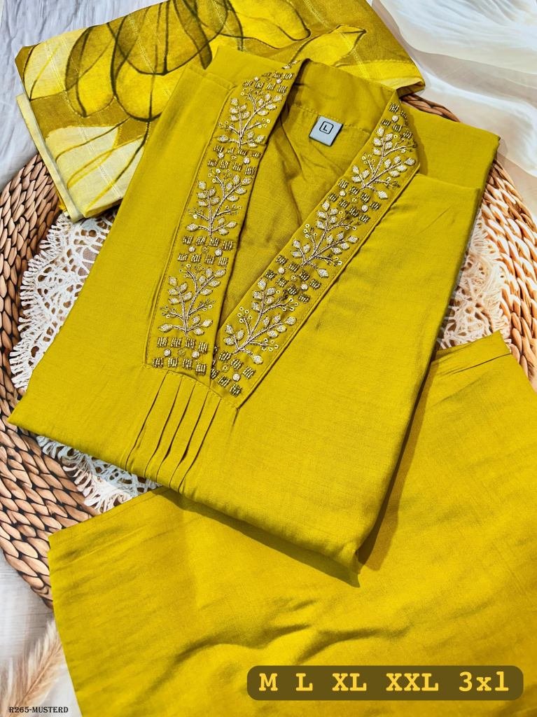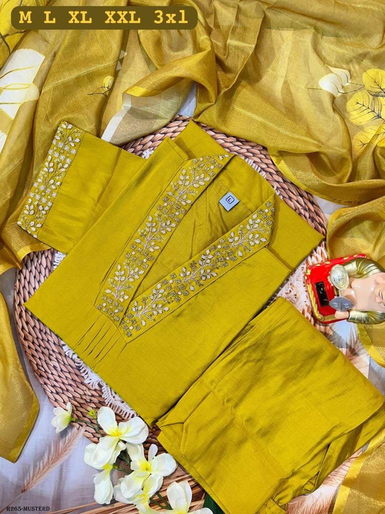 • Golden Rod Superb Hand Work Pure Muslin Kurti Set