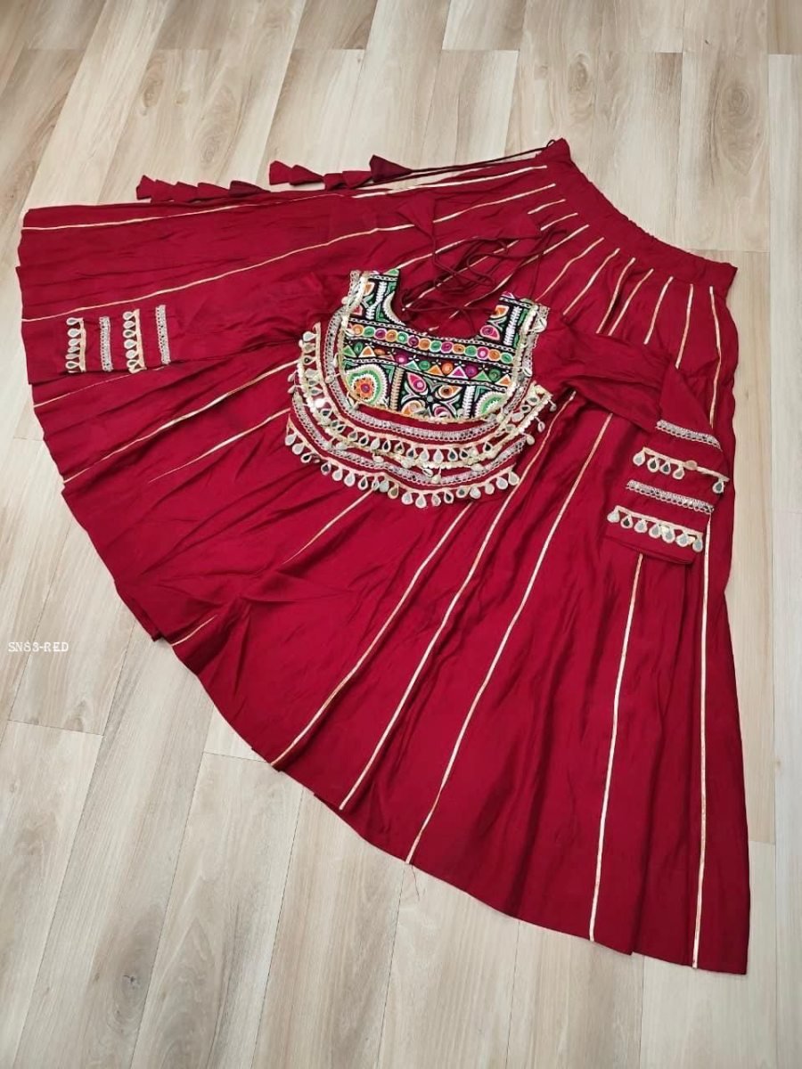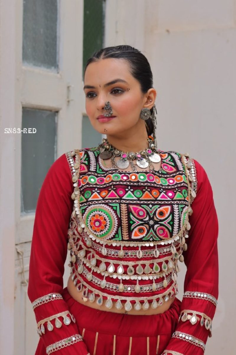 Fabrics & Work :- Roman Fabric With Kutchi Gamthi Embroidered Work And Mirror Lace Work