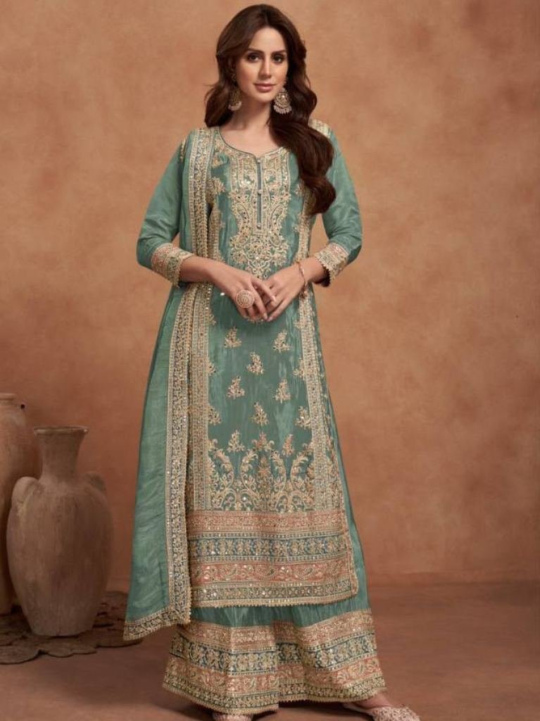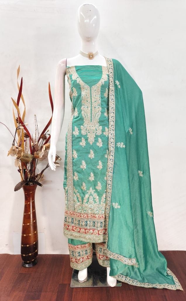 Heavy Pv Vichitra With Sequence & Codding Embroidery Work