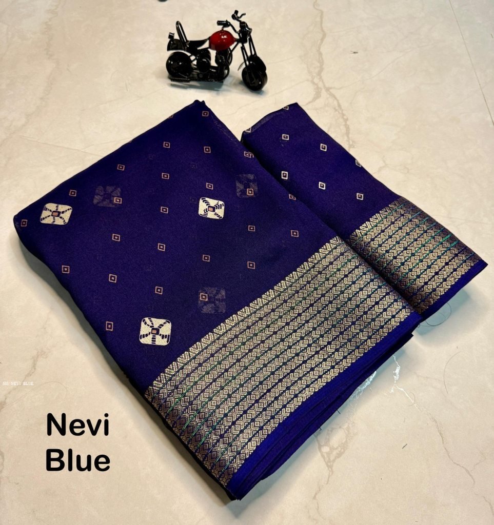 Saree - Soft Marshmallow Blooming Heavy Jacquard Weaving Border And Beautiful And Kalamkari Style Print Blouse - Soft Marshmallow Blooming Running Printed Blouse Length - 6.30 Meter