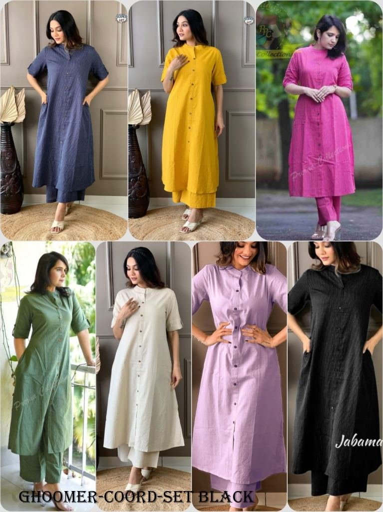 Gorgeous Designer Cord-set in Aline Kurtis pattern paired with Ankle length palazzo Ready made salwar kameez for Daily office Use