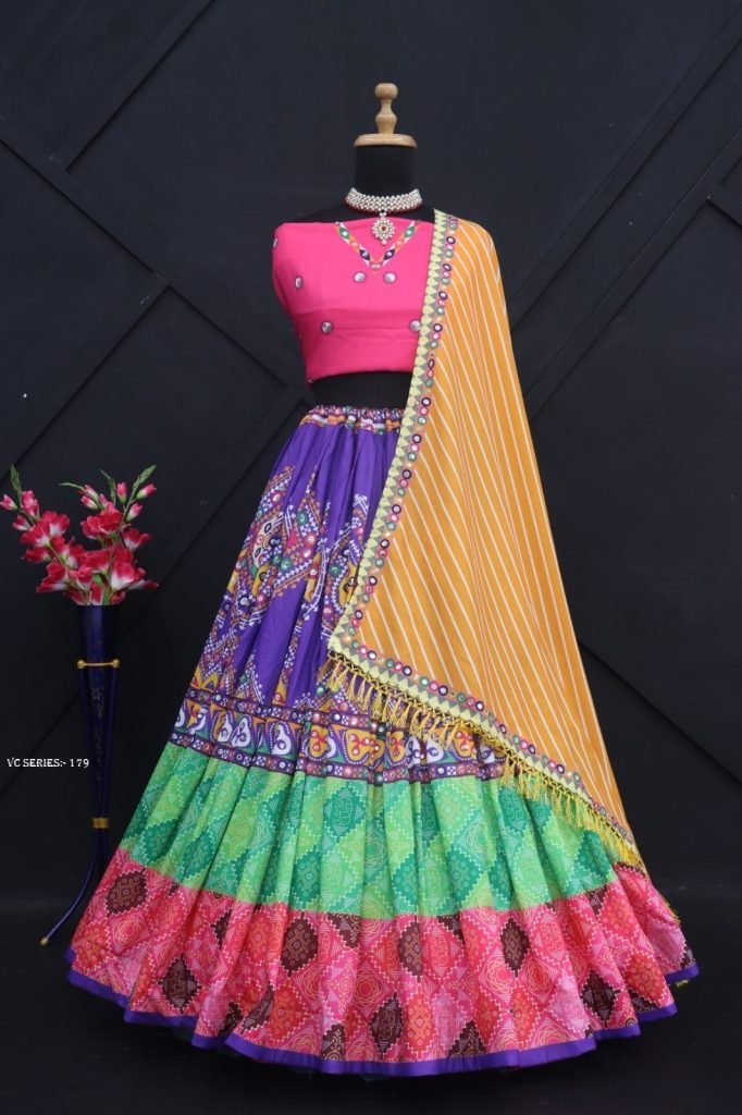 New Lounching Digital Print Muslin Cotton Lehenga Choli Lehenga(Semi-stitched)