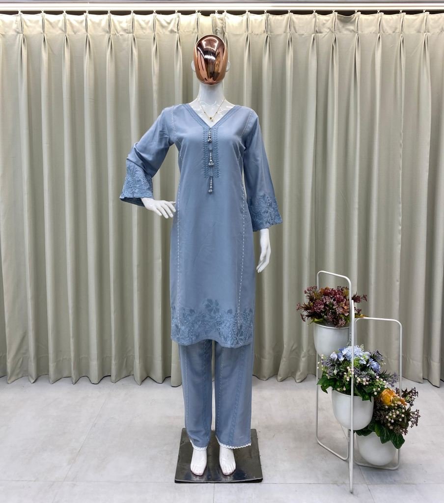 For Trending Running Wear Co-ord Set Pair With Beautiful Embroidery Work