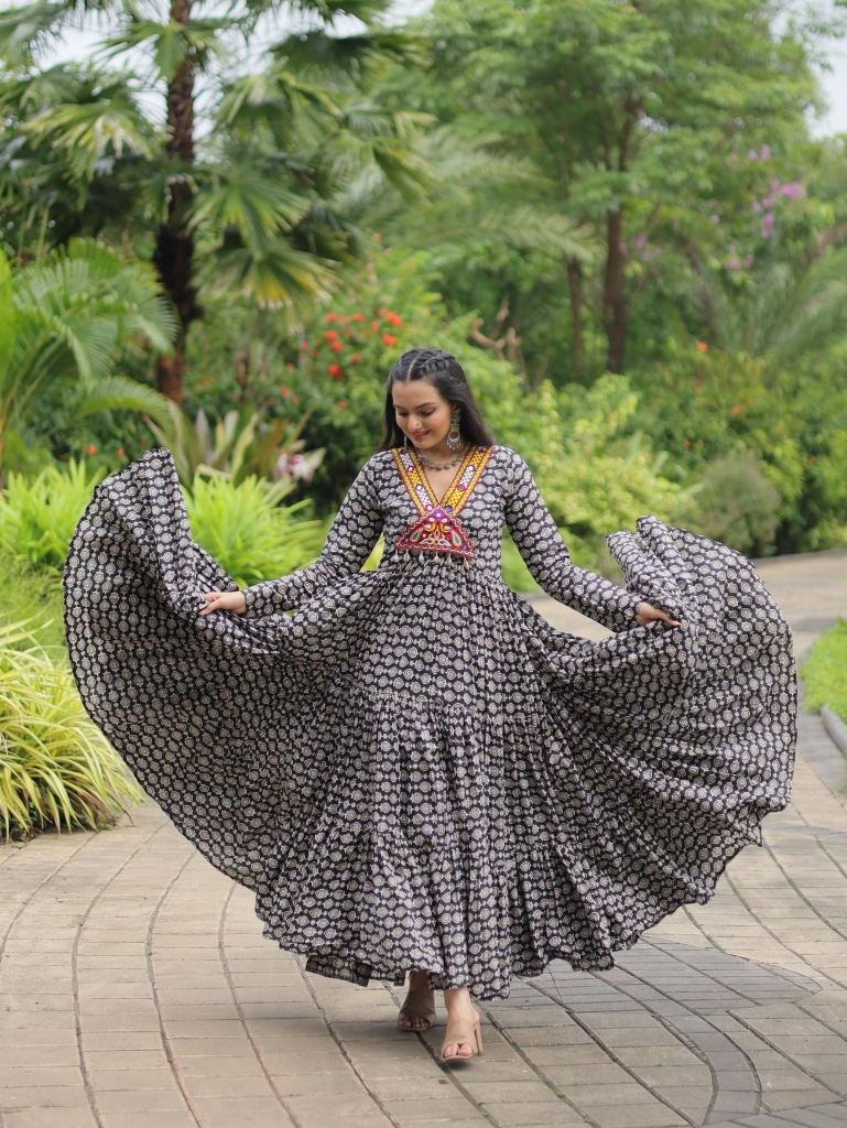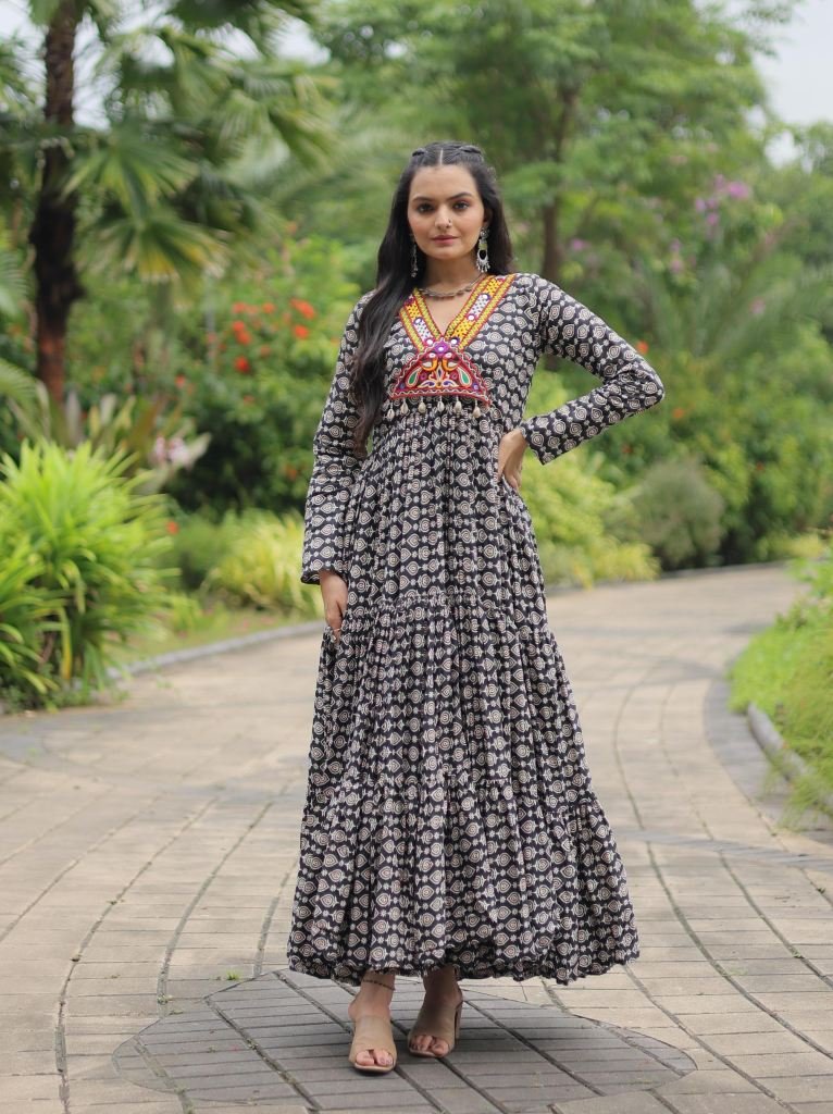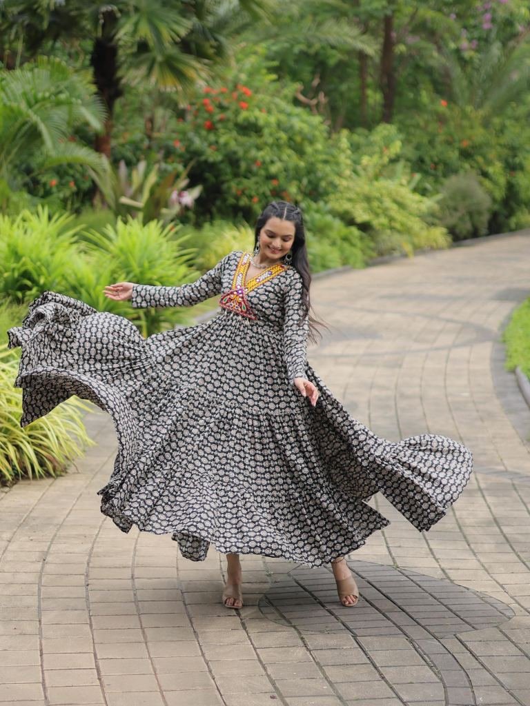 New Black Printed Cotton Kurti With Kutchi Gamthi Work
