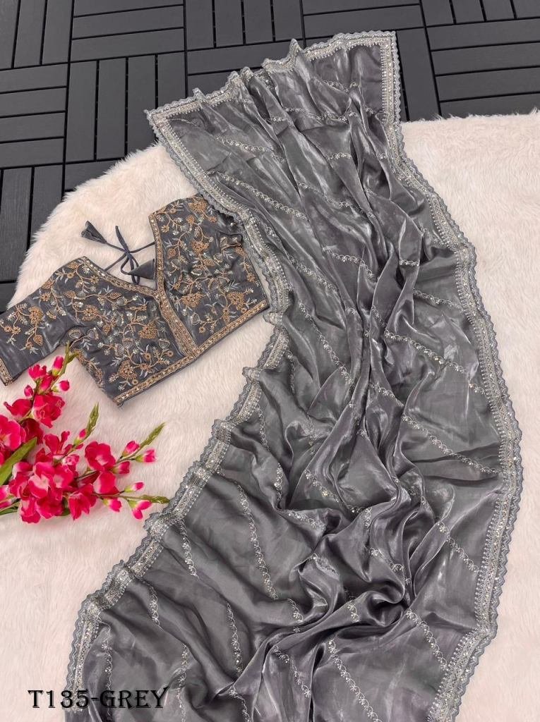 Saree:Pure soft zimmy choo silk sarees with amazing 3 mm sequence work with work border nd aarco