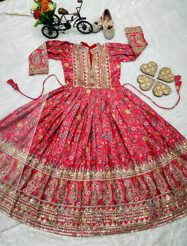 Fabric-heavy Chinon Silk With Digital Print Work With Embroidered Sequence Work With Fancy Button With Latkan Dori