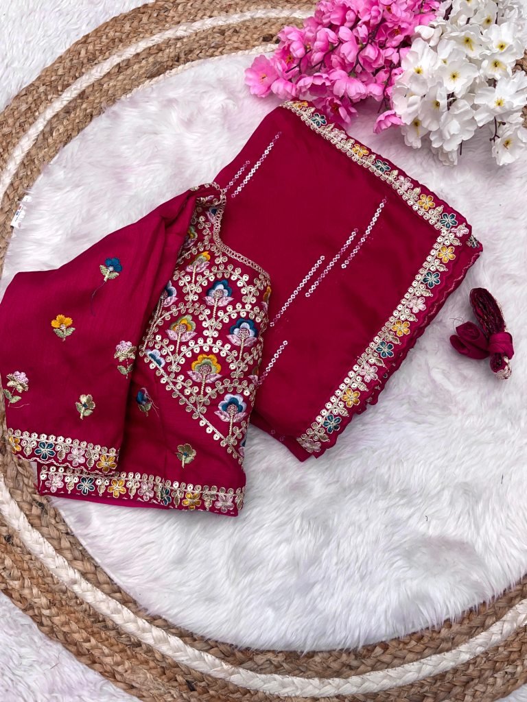 Pure Blooming Natural Rangoli Silk Saree With Elegant Sequence Design On All Over The Saree