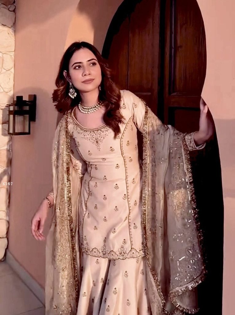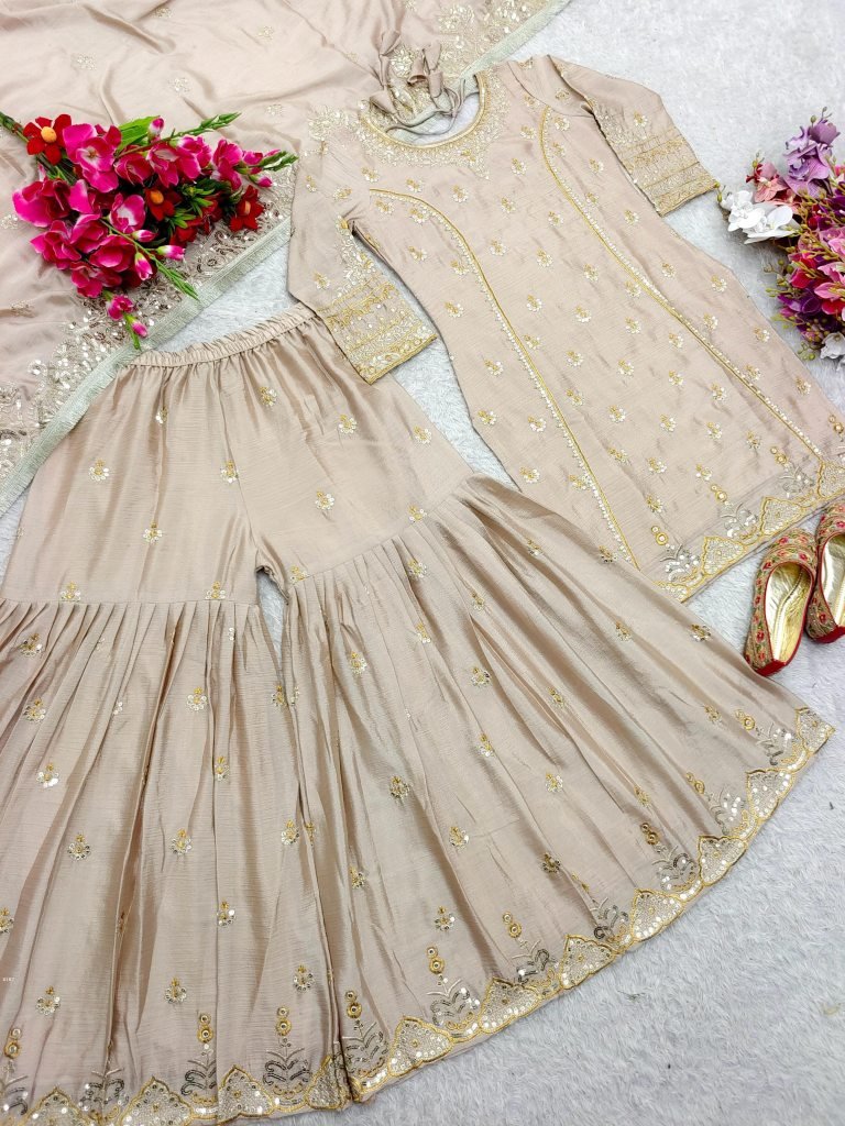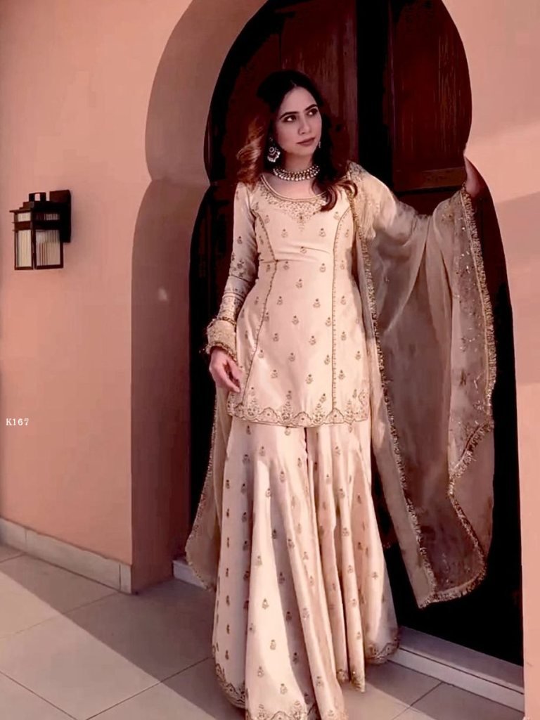 Sharara Fabrics :pure Cinon Silk With 5mm Siqwans Embroidery Work With Elastic Rubber