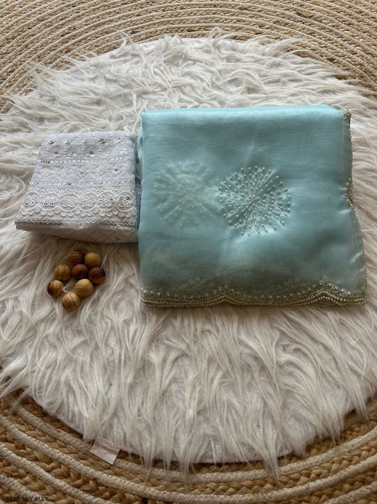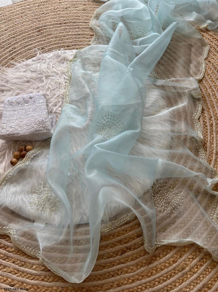 handwork saree in organza anika
