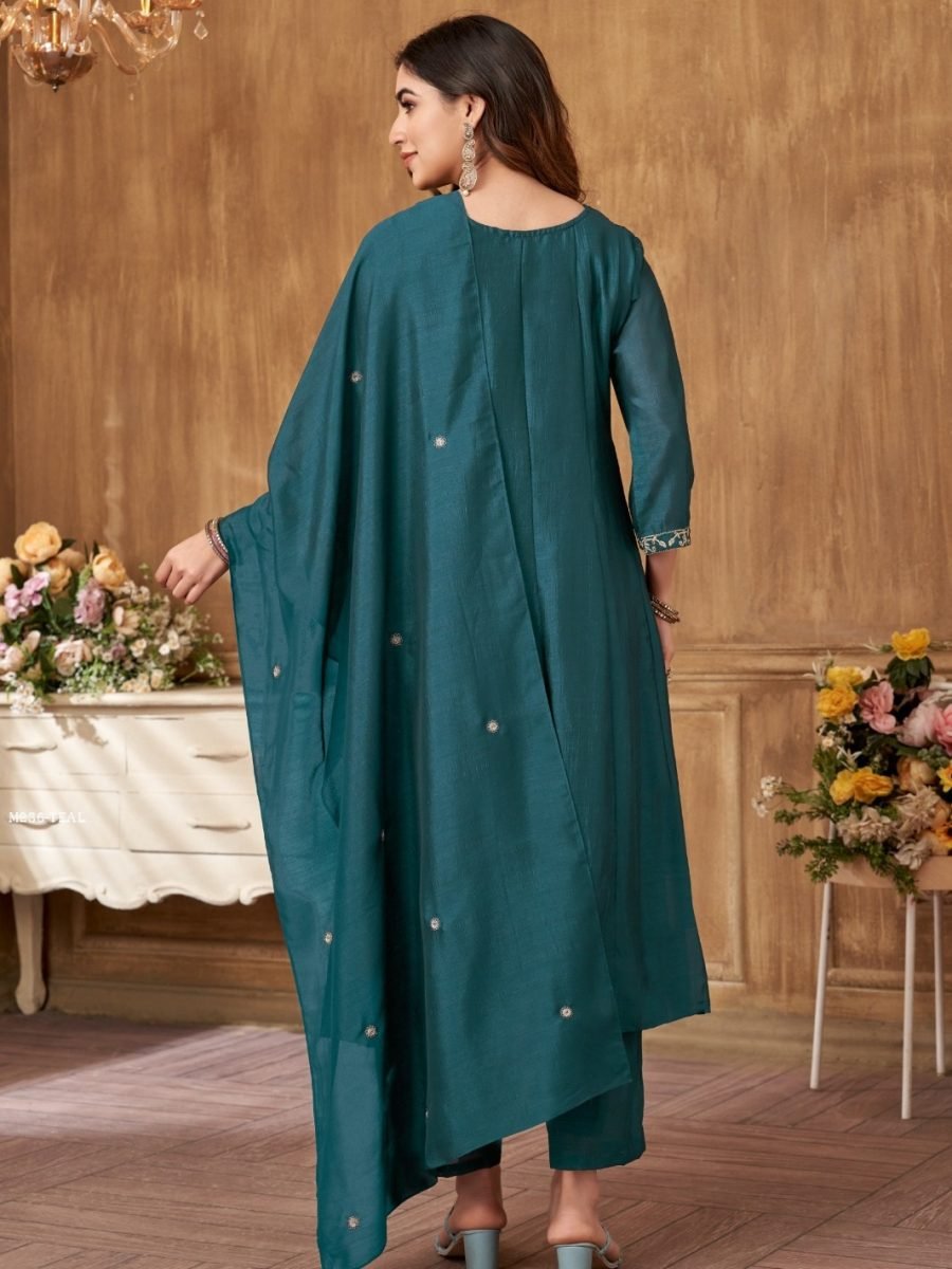 Women Luxurious Anarkali Embroidered Suit With Trouser And Dupatta