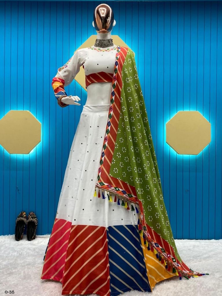 2024 this navratri rock with this printed and mirror work lehenga choli with dupatta