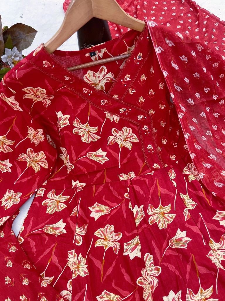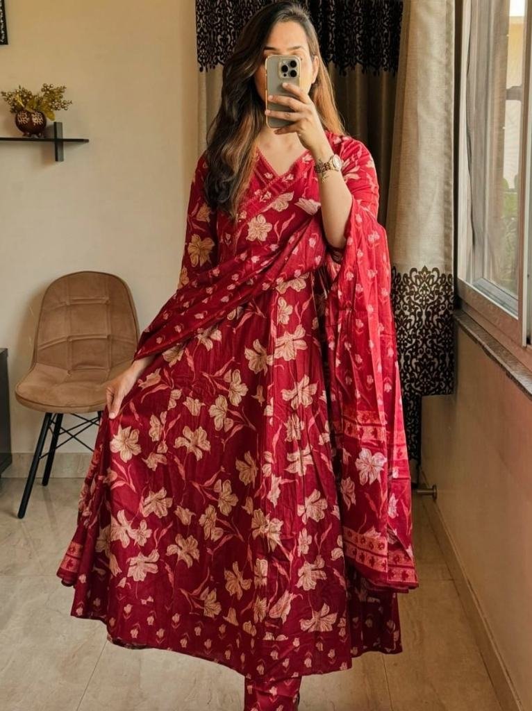 New Anarkali Kurta Set With New Style In Sanganeri Print