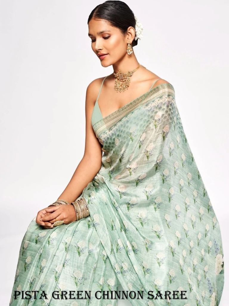Pure Chinon Saree With Moti Latkan in Saree Pallu