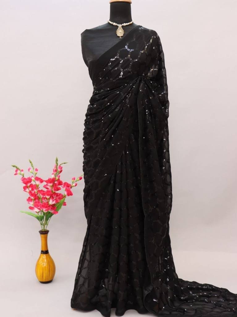 Work :- Georgette Silk Saree With Sequence Work With Piping Border.