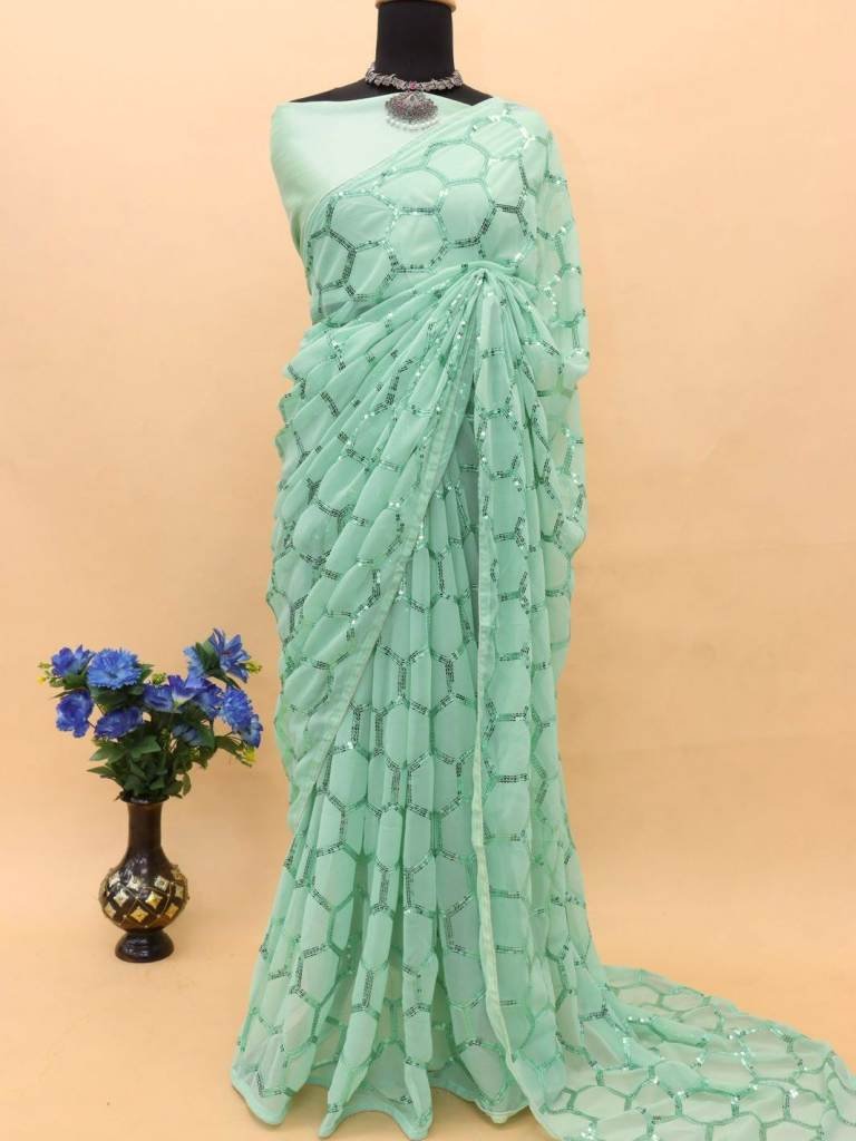 Work :- Georgette Silk Saree With Sequence Work With Piping Border.