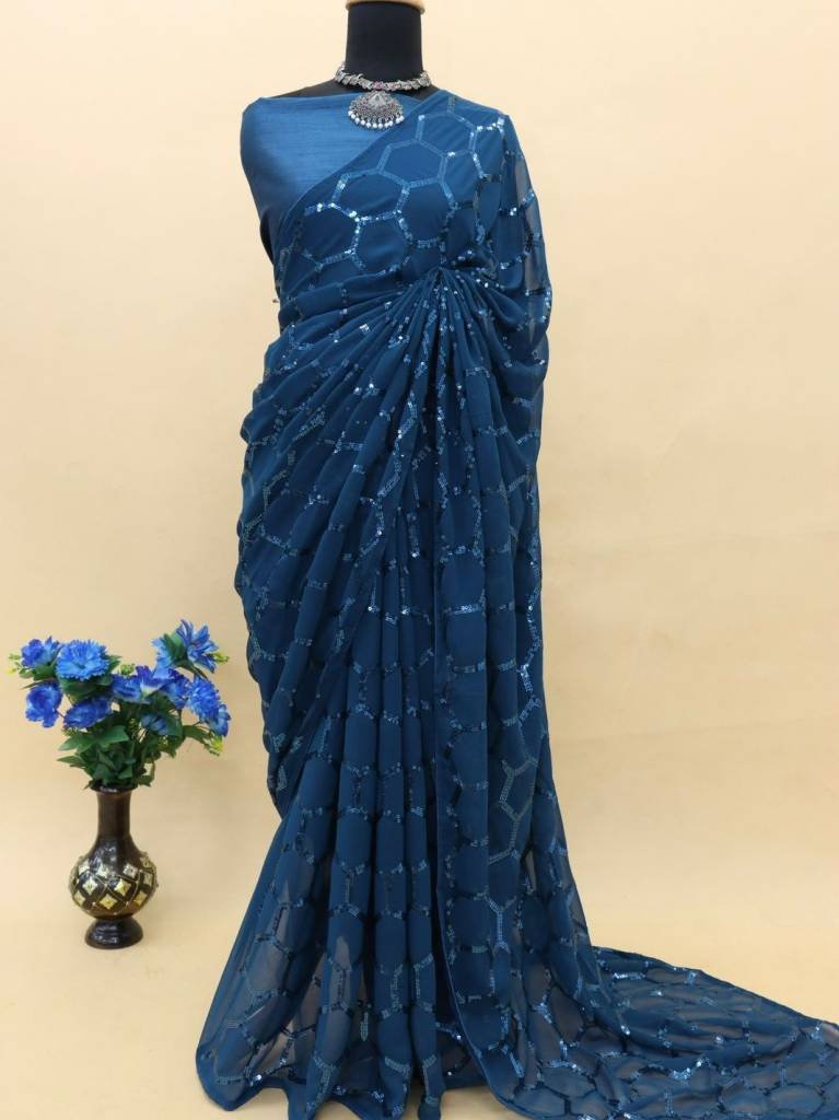 Work :- Georgette Silk Saree With Sequence Work With Piping Border.