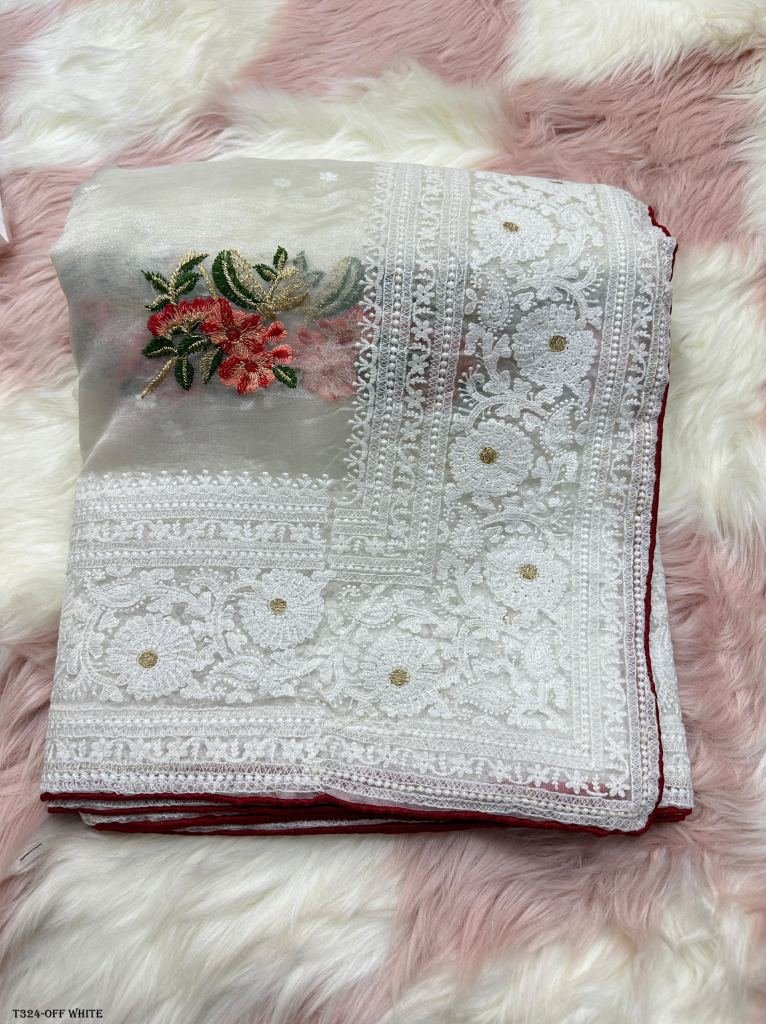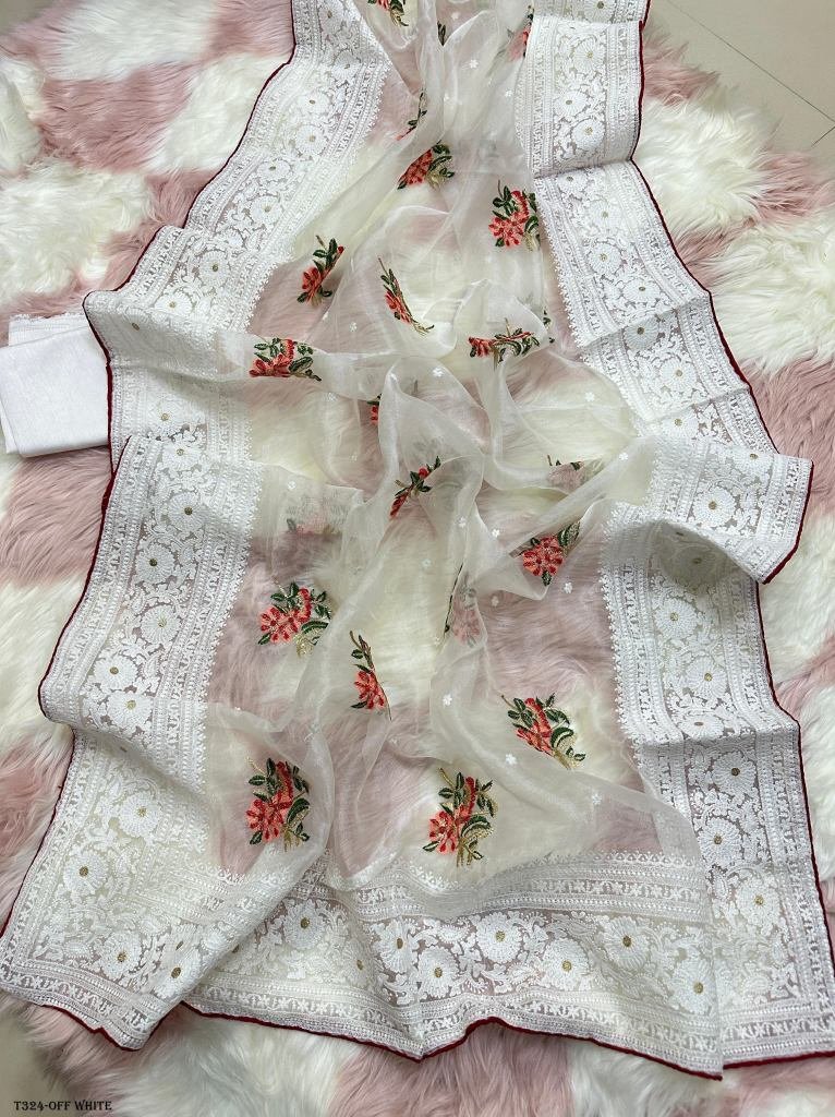 Superb Soft Refined Organza Silk Saree With Lucknowi Thread Chikankari Work border and multiple color viscos work in body too With Banglori Raw Silk Blouse