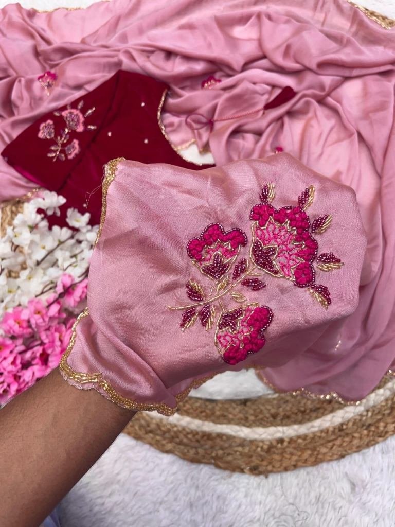 Work- : Cover with Three layer cutdana, Boder And double layer Arco Border Having Butta All Over Saree Run With cutdana, Moti And Resham Thread