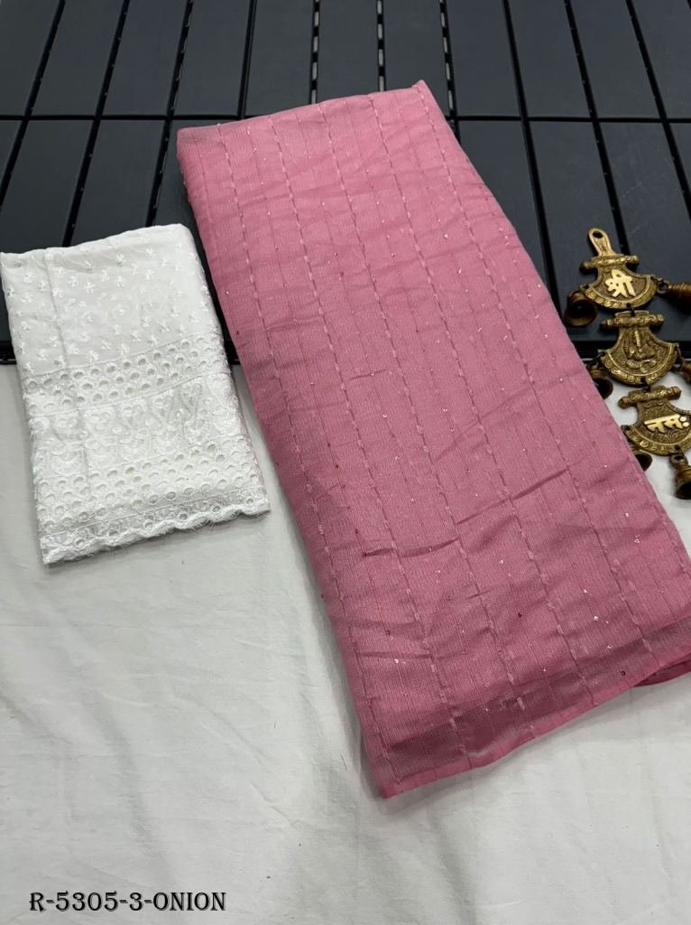 Onion Sequence Work Kora Organza Georgette Saree