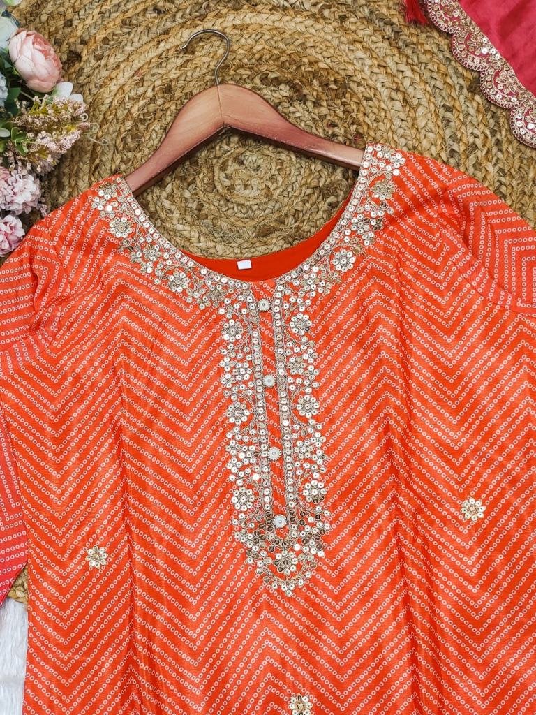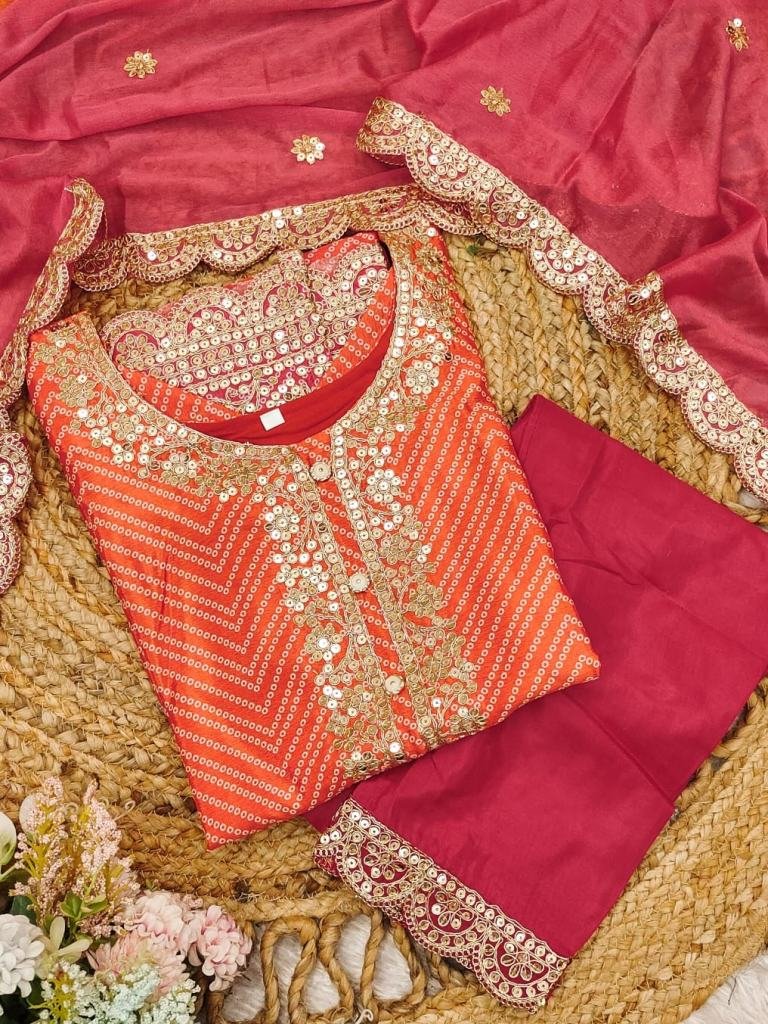 Fabric :- ChinonKurtis length :- 50”Pent length :- 40”Dupatta :- 2.25