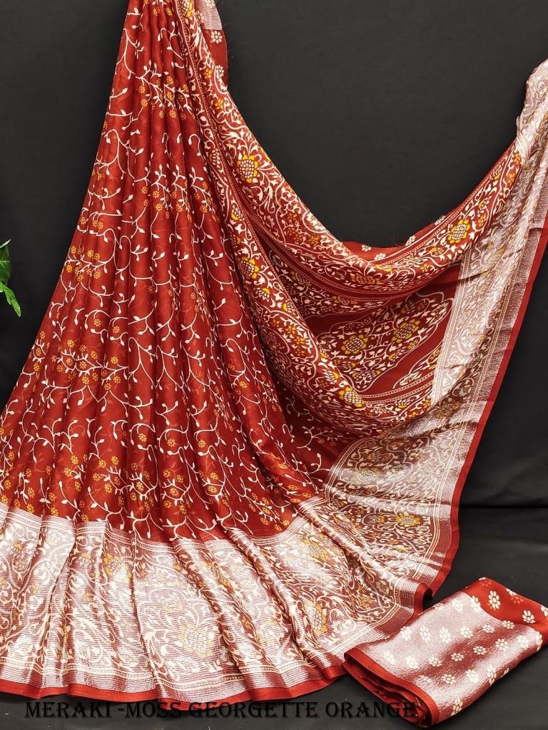 Beautiful light weight pure moss Georgette sarees with allover bandhani with flower design along with pure viscose border design border flower pallu