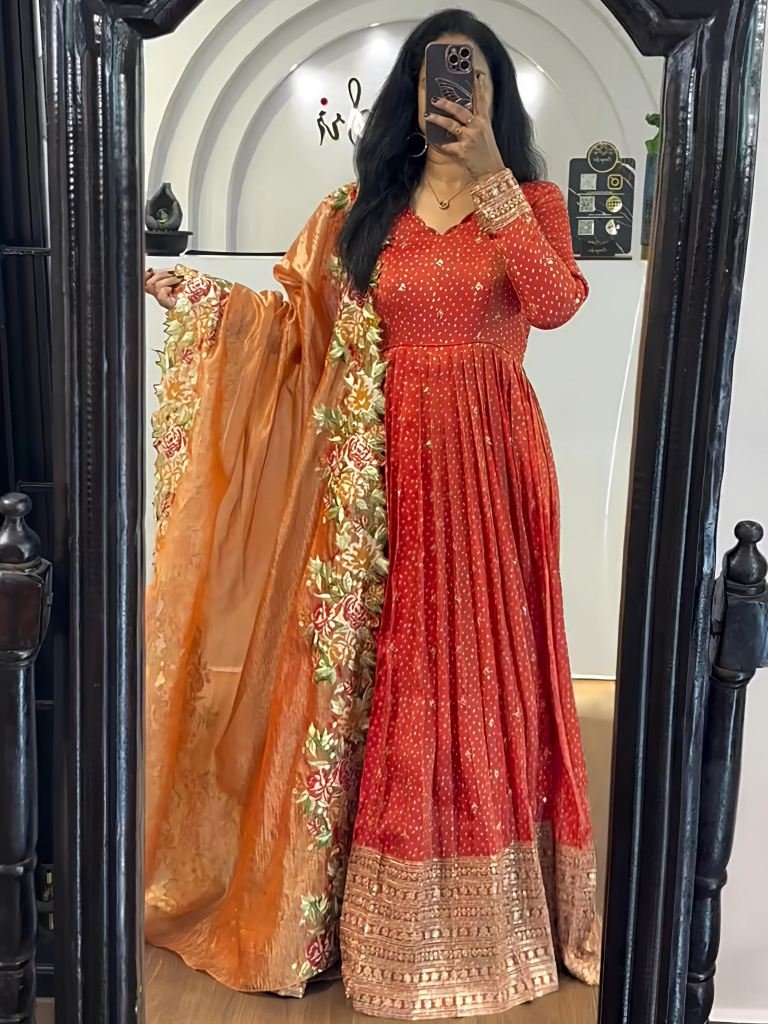 Launching New Designer Party Wear Look Full Heavy Embroidery Sequence Work Gown With Fully Stiched and Dupatta Ready to Wear Collection